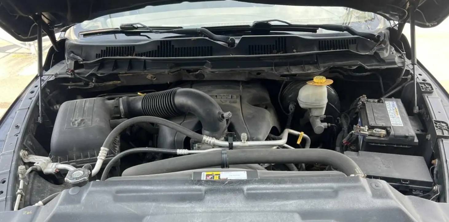 RAM 1500 je plnohodnotný americký pick-up s atmosférickým 5,7l V8 HEMI (8 válců), automatickou převodovkou a pohonem 4×4 včetně uzávěrky diferenciálu. Verze Crew Cab nabízí 5 míst, 4 dveře a korbu o délce 5,7 ft, vhodnou jak na práci, tak na tahání – vůz je vybaven tažným zařízením.